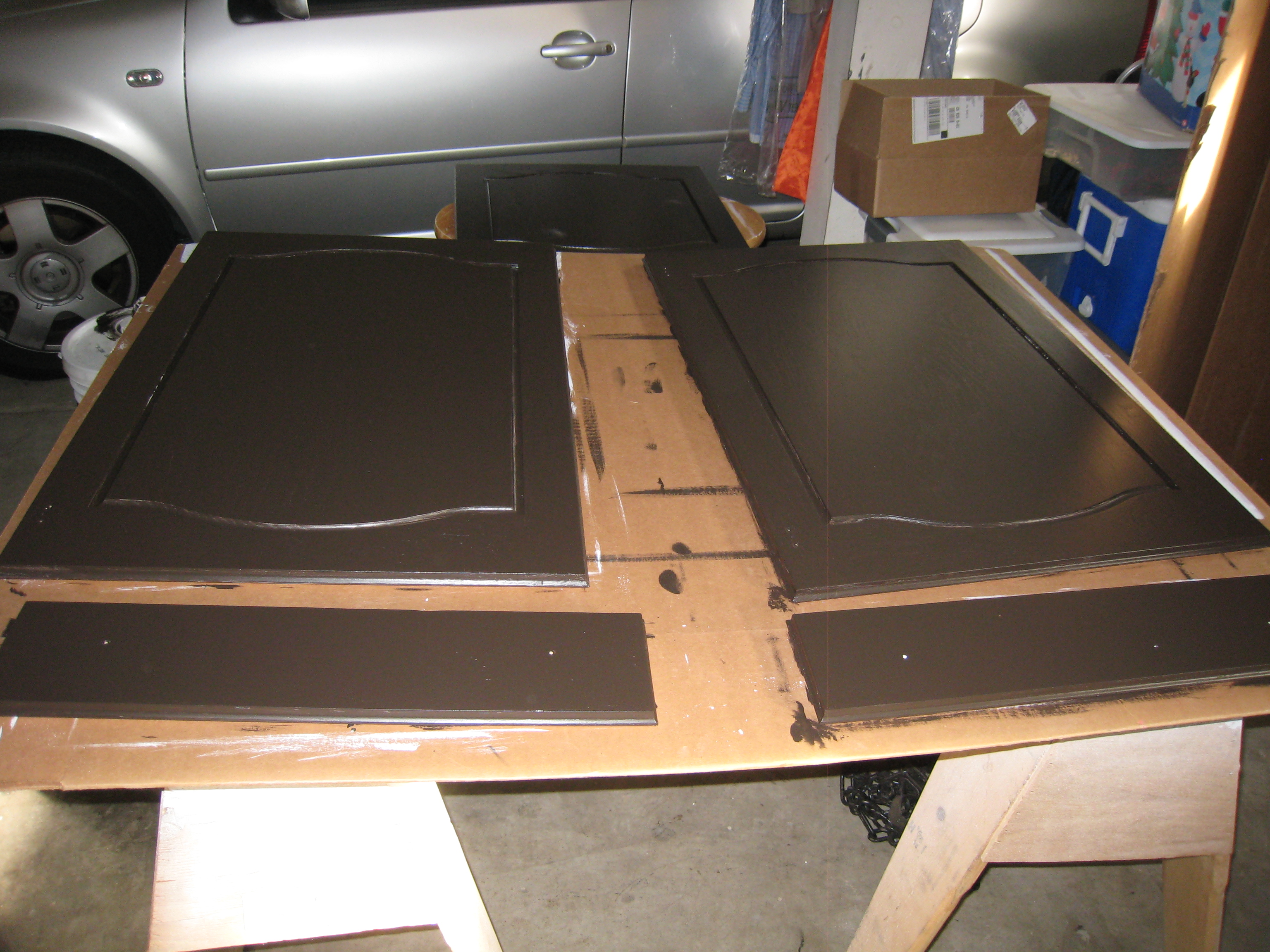 Doors with the first coat of paint.